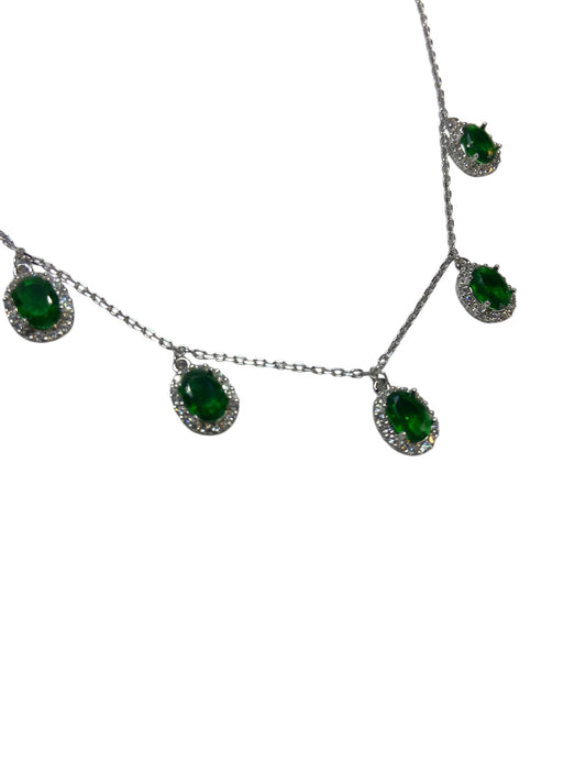 Silver Necklace with Green Stones-سلسال فضة باحجار خضراء