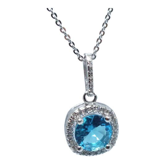 March Birthstone Aquamarine Necklace & Earrings Silver Miniset-طقم فضة سلسال و حلق حجر ميلاد شهر مارس