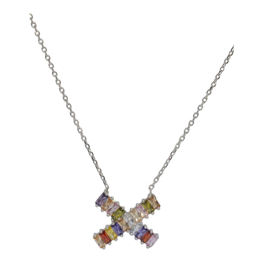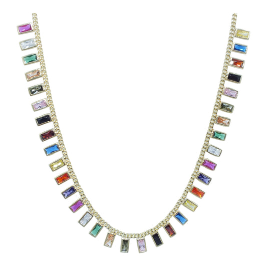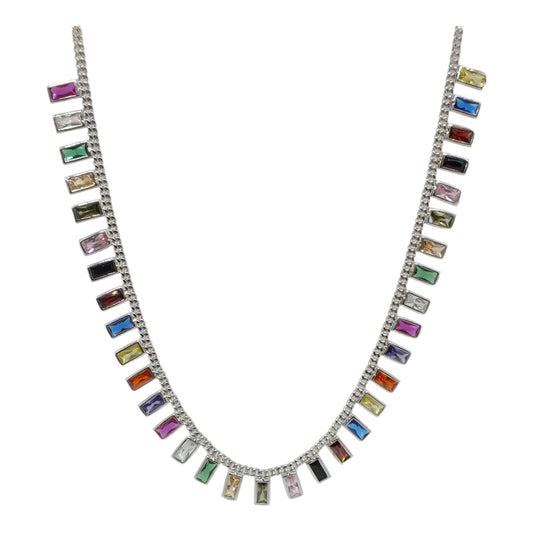 Silver Rainbow Tennis Necklace-سلسال تنس فضة بأحجار ملونة