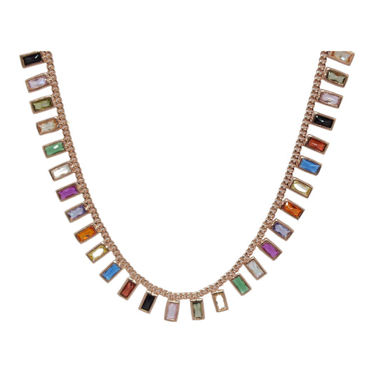 Silver Necklace With Colorful Stones (RoseGold Plated) -سلسال فضة مطلي روزجولد
