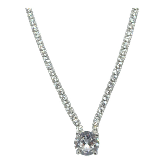 Silver Tennis Necklace with White Stone- سلسال تنس فضة مع حجر ابيض